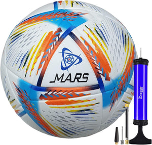 [PREMIUM QUALITY] – Made from the finest quality and high-grade materials, our match football is machine stitched, built for extreme sports conditions, will not rip or burst mid-game giving you reliability, and is sure to see you through many practice sessions. The synthetic leather 3-layer durable cover comprises TPU Epidermis, Nylon Gauze, and Rubber Liner layers, while the football itself features a high-quality air retention bladder.