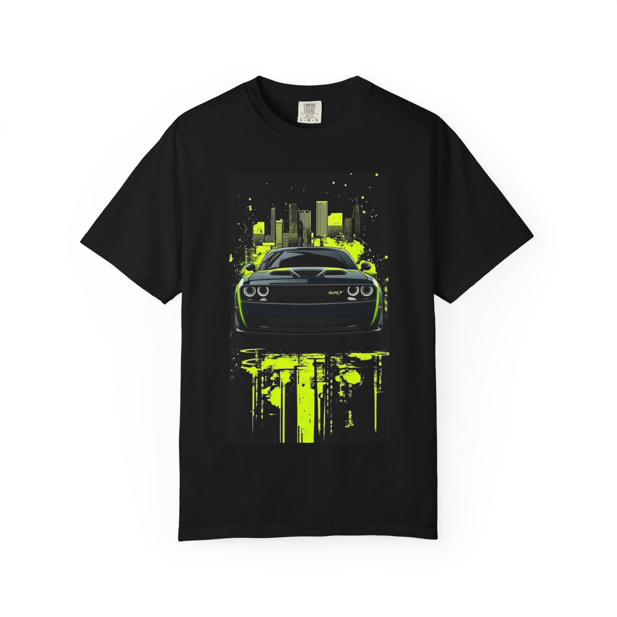 Muscle Car Graphic T-Shirt — Neon City Challenger Front Design | "Wholeness Est 1995" Back